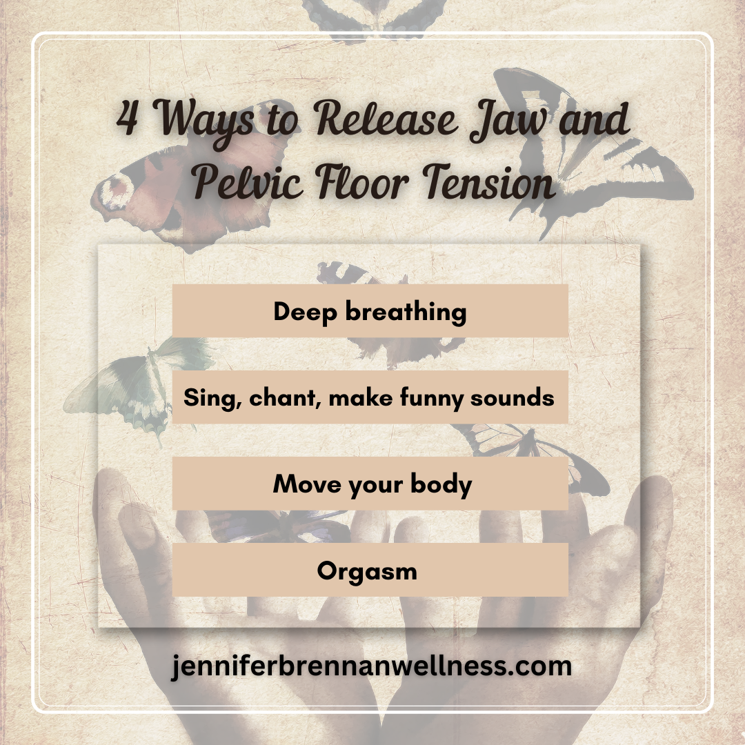 4. Have an "O." Speaking of the joy of your own body (wink, wink), there is incredible release to be had in both pelvic floor and jaw tension via orgasm. Whether you explore this possibility while flying solo or with a partner, a good O (or 2+!) can be just the refreshment your body and mind need. Paired with loving, sensual movement, there isn't much better (in my humble opinion).